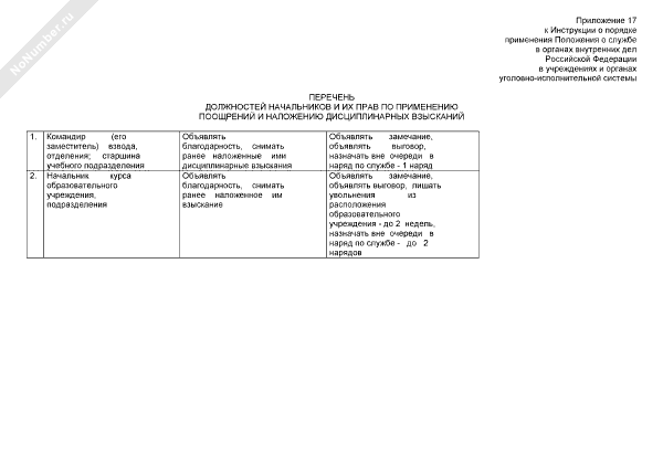 - 346Перечень должностей начальников и их прав по применению поощрений и наложению дисциплинарных взысканий