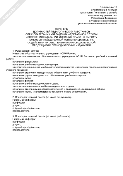 - 347Перечень должностей педагогических работников образовательных учреждений Федеральной службы исполнения наказаний, имеющих право на выплату ежемесячной денежной компенсации в целях содействия их обеспечению книгоиздательской продукцией и периодическими изданиями