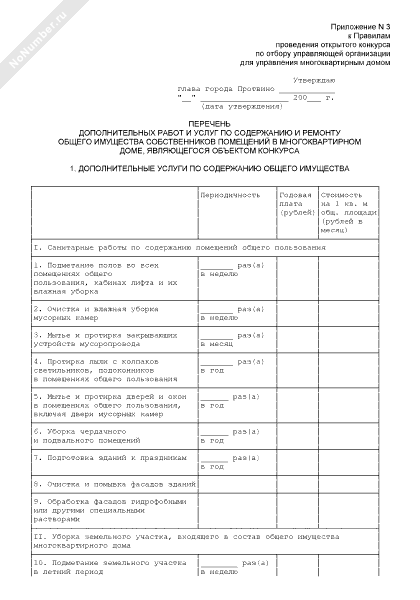 - 350Перечень дополнительных работ и услуг по содержанию и ремонту общего имущества собственников помещений в многоквартирном доме, являющегося объектом конкурса по отбору управляющей организации для управления многоквартирным домом на территории города Протвино