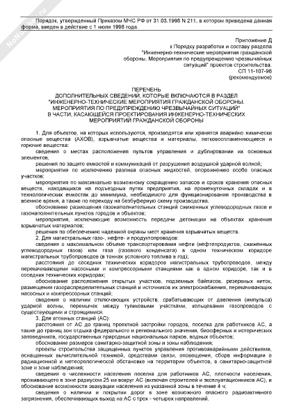 - 351Перечень дополнительных сведений, которые включаются в раздел «Инженерно-технические мероприятия гражданской обороны. Мероприятия по предупреждению чрезвычайных ситуаций» в части, касающейся проектирования инженерно-технических мероприятий гражданской обороны