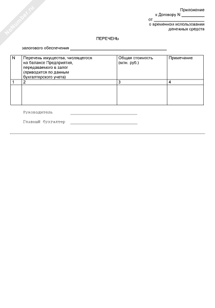- 356Перечень залогового обеспечения (приложение к типовому договору о временном использовании денежных средств)