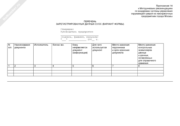 - 358Перечень зарегистрированных данных системы управления окружающей средой на лакокрасочных предприятиях города Москвы (вариант формы)