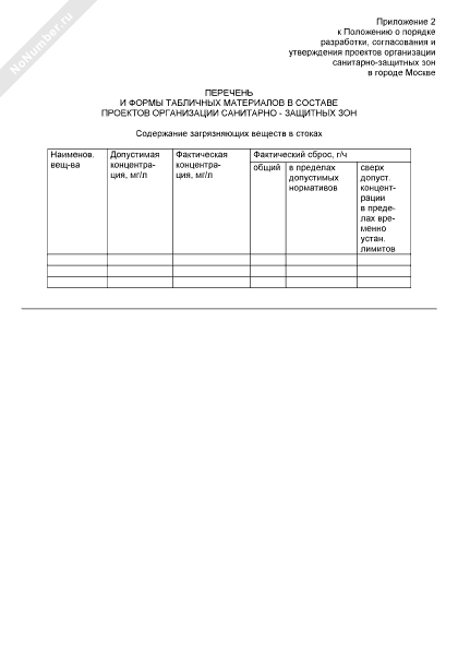 - 395Перечень и формы табличных материалов в составе проектов организации санитарно-защитных зон. Содержание загрязняющих веществ в стоках