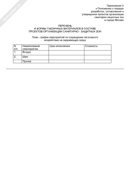 - 388Перечень и формы табличных материалов в составе проектов организации санитарно-защитных зон. План-график мероприятий по сокращению негативного воздействия на окружающую среду