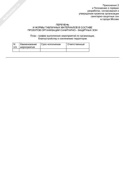 - 389Перечень и формы табличных материалов в составе проектов организации санитарно-защитных зон. План-график выполнения мероприятий по организации, благоустройству и озеленению территории