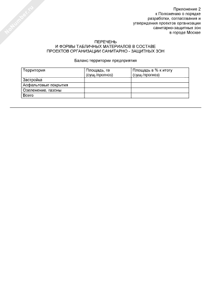 - 390Перечень и формы табличных материалов в составе проектов организации санитарно-защитных зон. Баланс территории предприятия