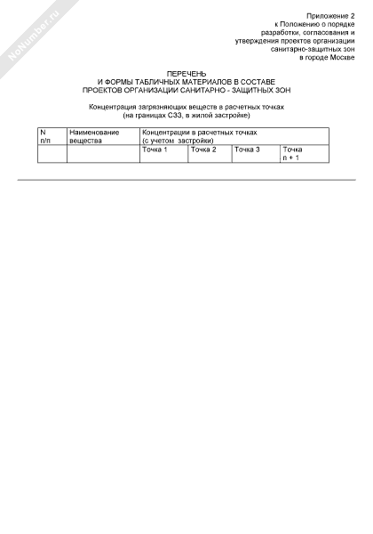- 394Перечень и формы табличных материалов в составе проектов организации санитарно-защитных зон. Концентрация загрязняющих веществ в расчетных точках (на границах санитарно-защитных зон, в жилой застройке)
