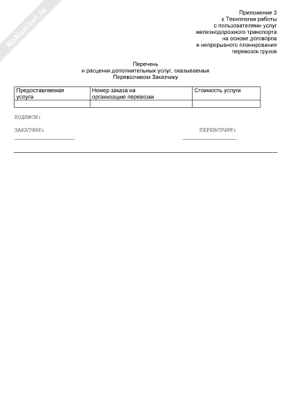 - 382Перечень и расценки дополнительных услуг, оказываемых перевозчиком заказчику (приложение к договору на организацию перевозок грузов и транспортно-экспедиционное обслуживание на железной дороге)