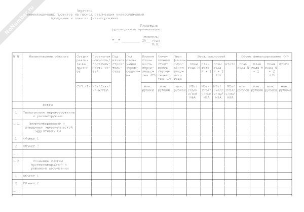 - 430Перечень инвестиционных проектов на период реализации инвестиционной программы и план их финансирования