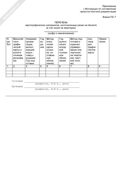 - 439Перечень картографических материалов, изготовленных ранее на объекте (в том числе на акватории). Форма № ПС-7
