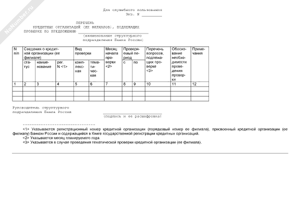 - 448Перечень кредитных организаций (их филиалов), подлежащих проверке по предложению Банка России (форма № 1)