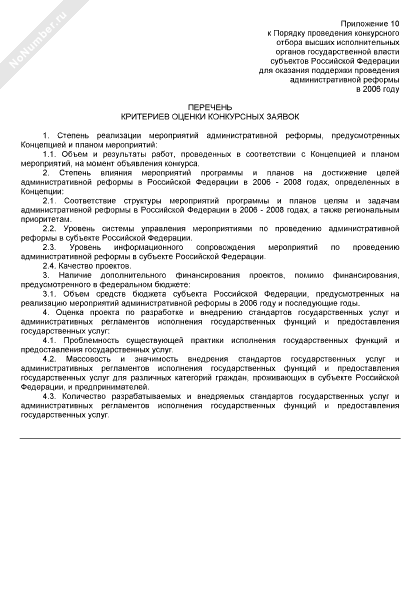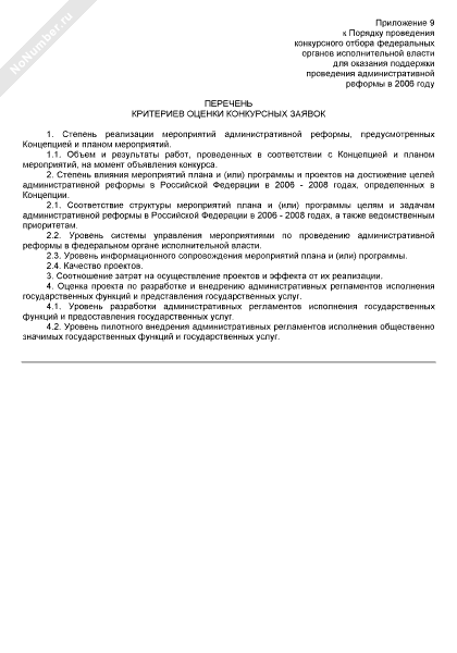 - 449Перечень критериев оценки конкурсных заявок высших исполнительных органов государственной власти субъектов Российской Федерации для оказания поддержки проведения административной реформы