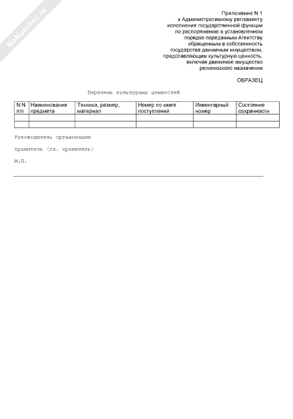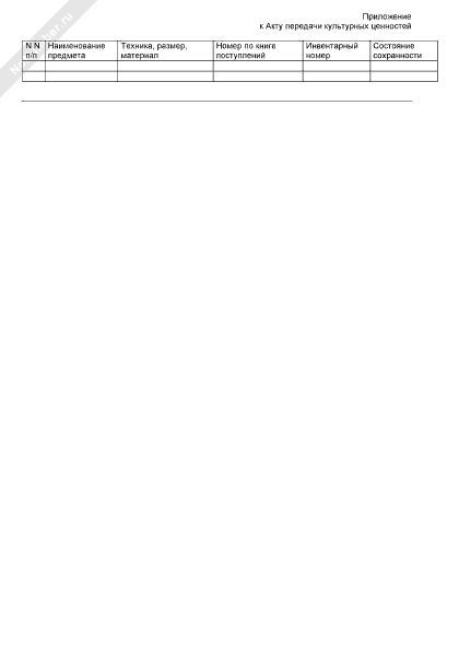- 454Перечень культурных ценностей (приложение к акту передачи культурных ценностей от одной организации к другой (обмене между организациями))
