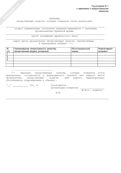 - 455Перечень лекарственных средств, которые заявитель готов производить (приложение к заявлению о предоставлении лицензии на осуществление деятельности по производству лекарственных средств)