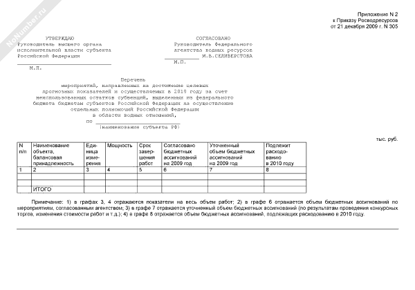 - 487Перечень мероприятий, направленных на достижение целевых прогнозных показателей и осуществляемых в 2010 году за счет неиспользованных остатков субвенций, выделенных из федерального бюджета бюджетам субъектов Российской Федерации на осуществление отдельных полномочий Российской Федерации в области водных отношений