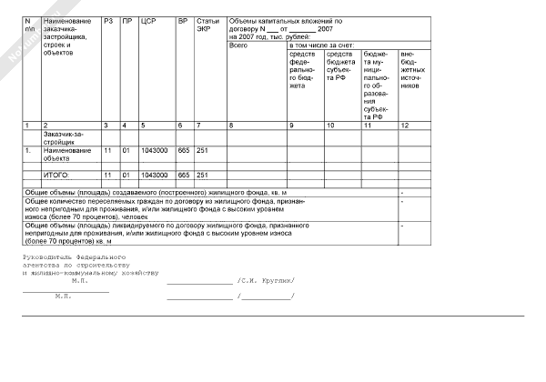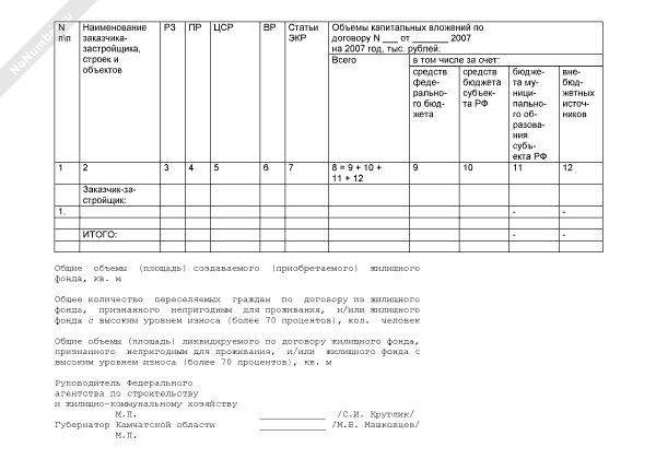 - 494Перечень мероприятий, финансируемых с участием средств федерального бюджета в 2007 году. Федеральная целевая программа «Жилище» на 2002–2010 гг., подпрограмма «Модернизация объектов коммунальной инфраструктуры» в части переселения граждан из жилищного фонда, признанного непригодным для проживания и/или с высоким уровнем износа (более 70 процентов) (приложение к типовому договору о финансировании из федерального бюджета мероприятий по приобретению в 2007 году жилья по подпрограмме «Модернизация объектов коммунальной инфраструктуры»)