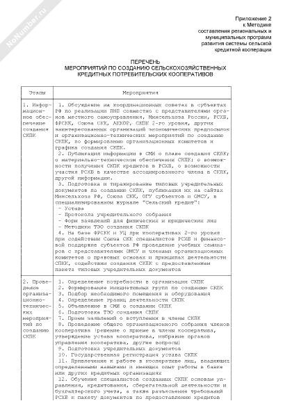 - 496Перечень мероприятий по созданию сельскохозяйственных кредитных потребительских кооперативов