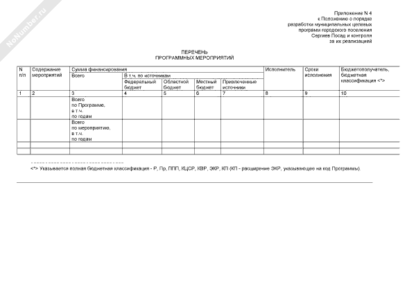 - 490Перечень мероприятий по выполнению муниципальной целевой программы городского поселения Сергиев Посад Московской области