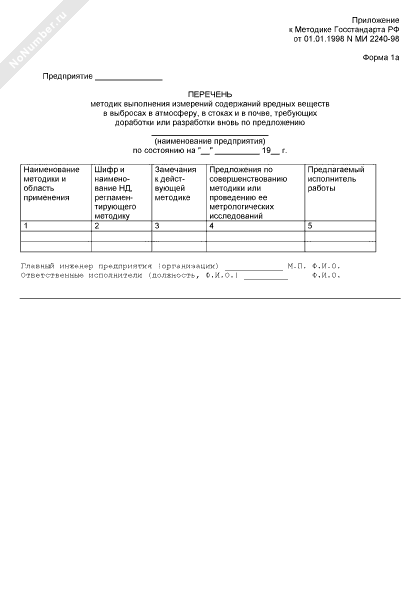 - 508Перечень методик выполнения измерений содержаний вредных веществ в выбросах в атмосферу, в стоках и в почве, требующих доработки или разработки вновь по предложению предприятия. Форма № 1А