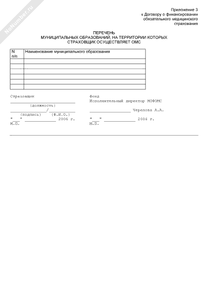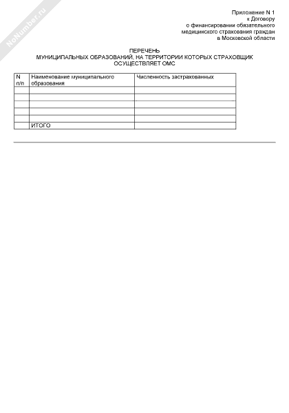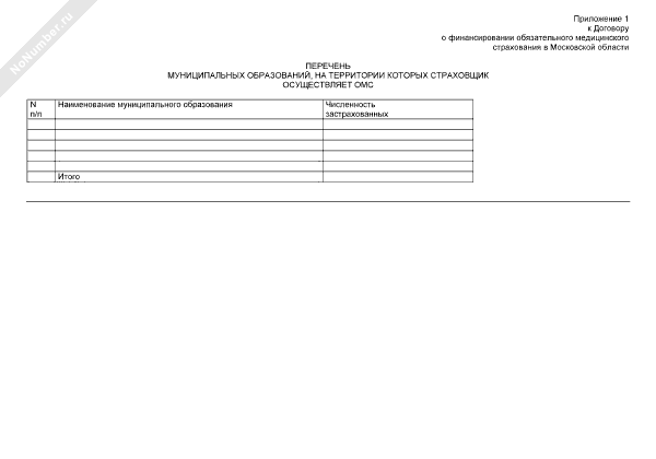 - 515Перечень муниципальных образований, на территории которых страховщик осуществляет ОМС (приложение к договору о финансировании обязательного медицинского страхования в Московской области)