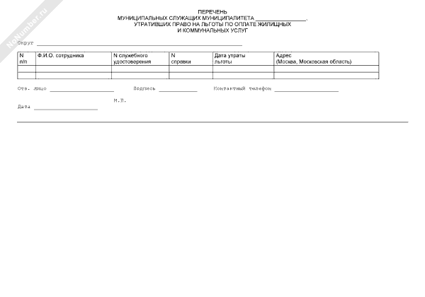 - 513Перечень муниципальных служащих муниципалитета, утративших право на льготы по оплате жилищных и коммунальных услуг (приложение к договору на возмещение выпадающих доходов от предоставления муниципальным служащим муниципалитета льгот по оплате жилищных и коммунальных услуг)