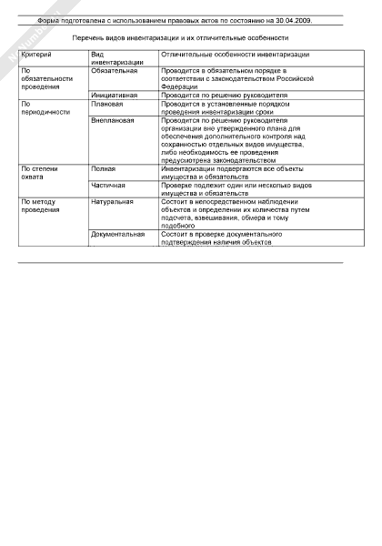 - 60Перечень видов инвентаризации и их отличительные особенности