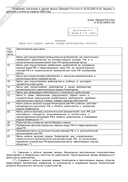 - 59Перечень видов квот добычи (вылова) водных биологических ресурсов (приложение к форме № 1-П (рыба))