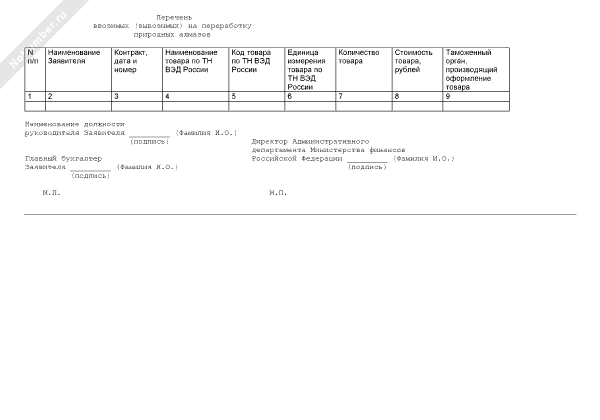 - 50Перечень ввозимых (вывозимых) на переработку природных алмазов