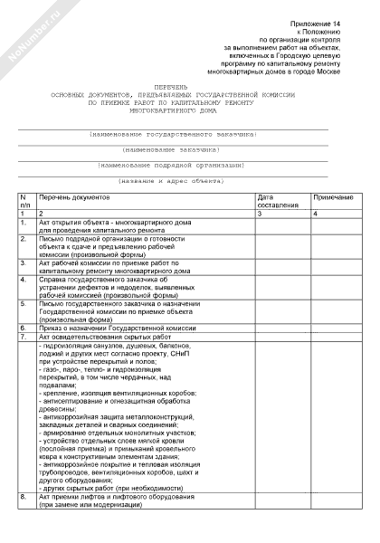 - 714Перечень основных документов, предъявляемых государственной комиссии по приемке работ по капитальному ремонту многоквартирного дома (в рамках Городской целевой программы по капитальному ремонту многоквартирных домов на 2008-2014 гг. в городе Москве)