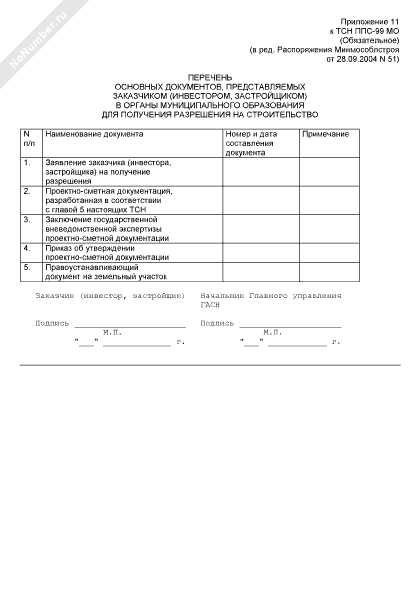 - 702Перечень основных документов, представляемых заказчиком (инвестором, застройщиком) в органы муниципального образования Московской области для получения разрешения на строительство