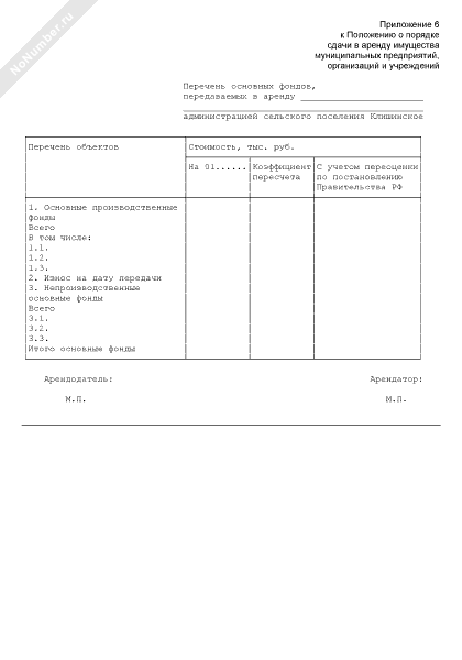 - 716Перечень основных фондов, передаваемых в аренду администрацией сельского поселения Клишинское Озерского района Московской области