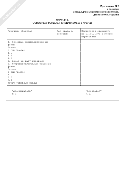 - 708Перечень основных фондов, передаваемых в аренду (приложение к договору аренды для имущественного комплекса, движимого имущества, находящегося в муниципальной собственности г. Коломны Московской области)