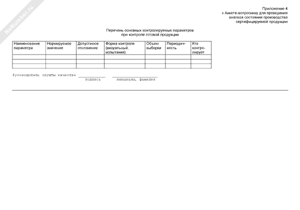 - 701Перечень основных контролируемых параметров при контроле готовой продукции в области пожарной безопасности в Российской Федерации (приложение к анкете-вопроснику для проведения анализа состояния производства сертифицируемой продукции)