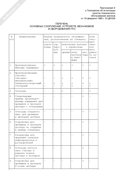 - 710Перечень основных сооружений, устройств, механизмов и оборудования пункта технического обслуживания вагонов