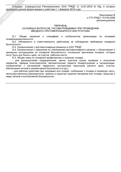 - 707Перечень основных вопросов, рассматриваемых при проведении вводного противопожарного инструктажа в ОАО «РЖД»