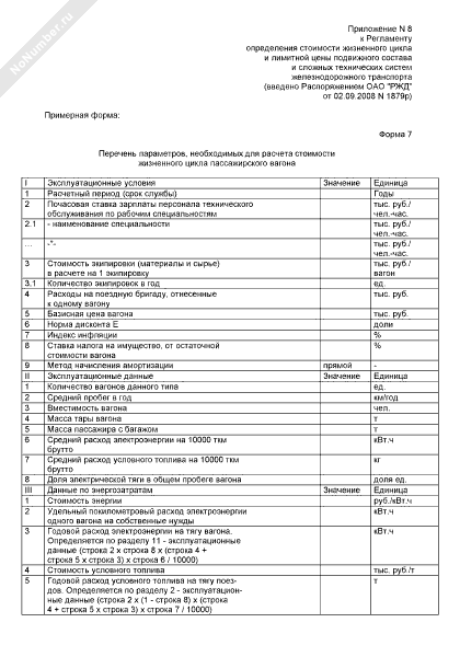 - 720Перечень параметров, необходимых для расчета стоимости жизненного цикла пассажирского вагона (форма № 7)