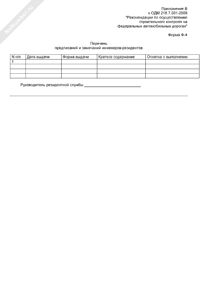 - 763Перечень предписаний и замечаний инженеров-резидентов при осуществлении строительного контроля на федеральных автомобильных дорогах. Форма № Ф-4