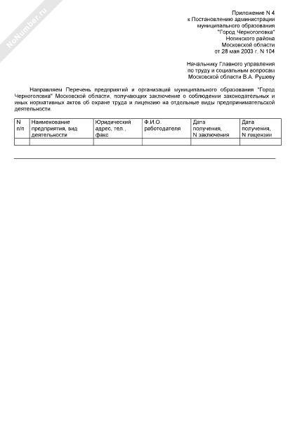 - 766Перечень предприятий и организаций муниципального образования г. Черноголовка Ногинского района Московской области, получающих заключение о соблюдении законодательных и иных нормативных актов об охране труда и лицензию на отдельные виды предпринимательской деятельности