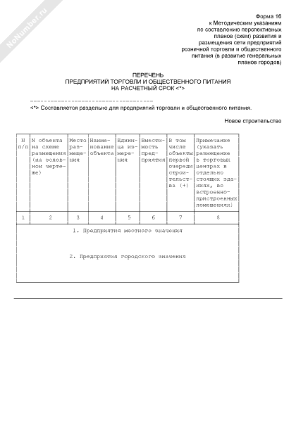 - 765Перечень предприятий торговли и общественного питания на расчетный срок (форма № 16)