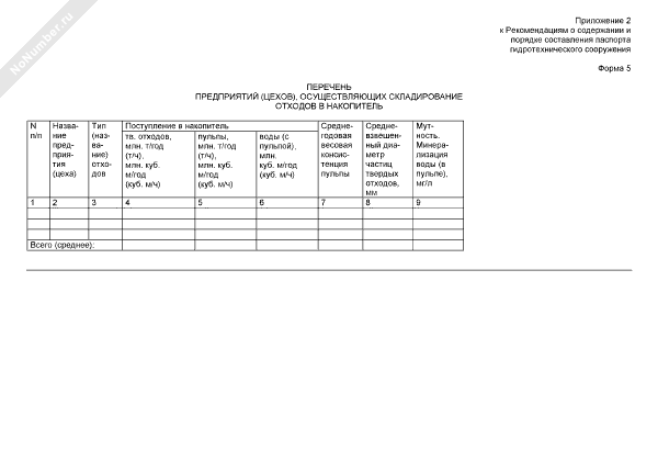 - 768Перечень предприятий (цехов), осуществляющих складирование отходов в накопитель (форма № 5)