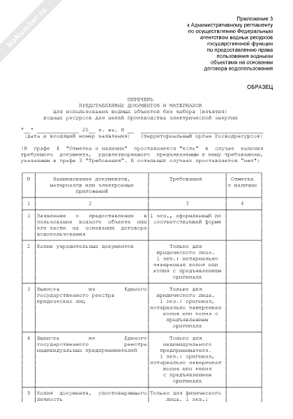- 770Перечень представленных документов и материалов для использования водных объектов без забора (изъятия) водных ресурсов для целей производства электрической энергии