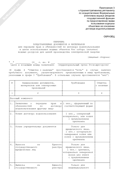 - 772Перечень представленных документов и материалов для передачи прав и обязанностей по договору водопользования в целях использования водных объектов без забора (изъятия) водных ресурсов для целей производства электрической энергии