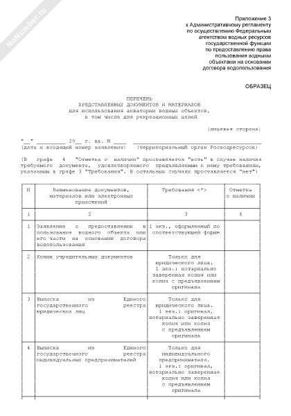 - 769Перечень представленных документов и материалов для использования акватории водных объектов, в том числе для рекреационных целей