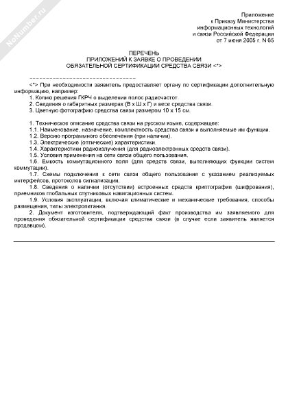 - 777Перечень приложений к заявке о проведении обязательной сертификации средства связи