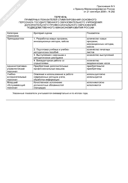 - 780Перечень примерных показателей стимулирования основного персонала государственного образовательного учреждения дополнительного профессионального образования, подведомственного Минэкономразвития России