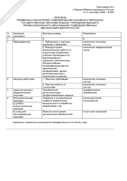 - 779Перечень примерных показателей стимулирования основного персонала государственных образовательных учреждений высшего профессионального образования, подведомственных Минэкономразвития России
