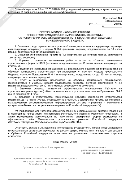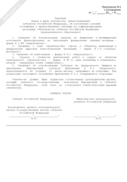 - 65Перечень видов и форм отчетности, предоставляемой субъектом РФ, об исполнении условий соглашения о предоставлении субсидии на софинансирование расходных обязательств субъекта РФ (муниципального образования) (приложение к соглашению о предоставлении субсидии из федерального бюджета бюджету субъекта РФ на софинансирование расходных обязательств субъекта РФ (муниципальных образований) по поддержке экономического и социального развития коренных малочисленных народов Севера, Сибири и Дальнего Востока РФ)