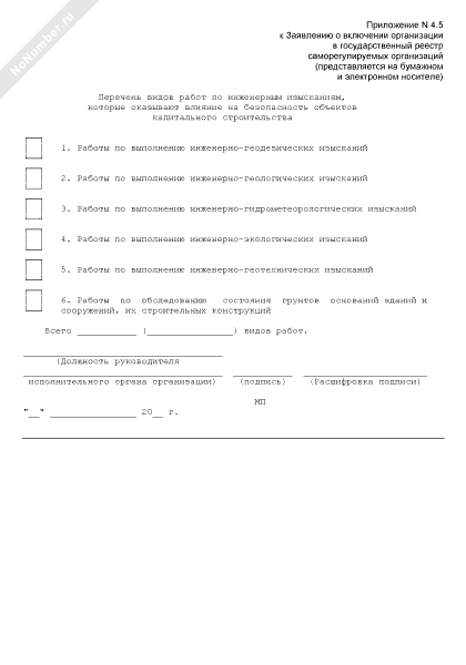 - 61Перечень видов работ по инженерным изысканиям, которые оказывают влияние на безопасность объектов капитального строительства (приложение к заявлению о включении организации в государственный реестр саморегулируемых организаций (представляется на бумажном и электронном носителе))