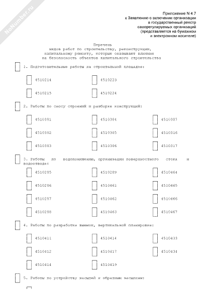 - 63Перечень видов работ по строительству, реконструкции, капитальному ремонту, которые оказывают влияние на безопасность объектов капитального строительства (приложение к заявлению о включении организации в государственный реестр саморегулируемых организаций (представляется на бумажном и электронном носителе))