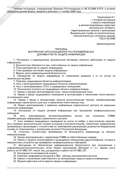 - 70Перечень внутренних организационно-распорядительных документов по защите информации в автоматизированных средствах центрального аппарата, территориальных органов и организаций Федеральной службы по экологическому, технологическому и атомному надзору